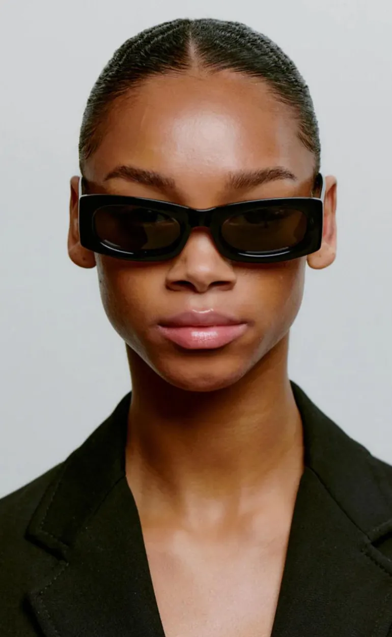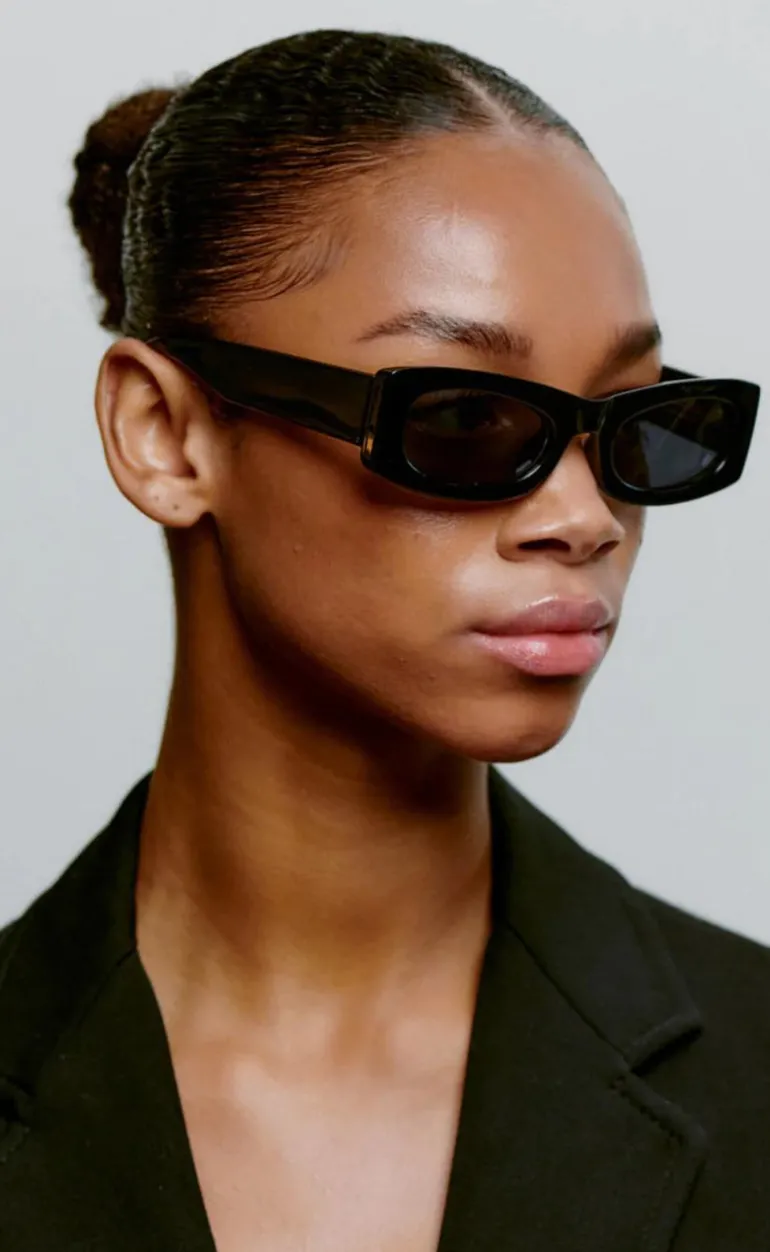 Disse solbriller har et firkantet og smalt glas, og er perfekte til at pifte et outfit op!