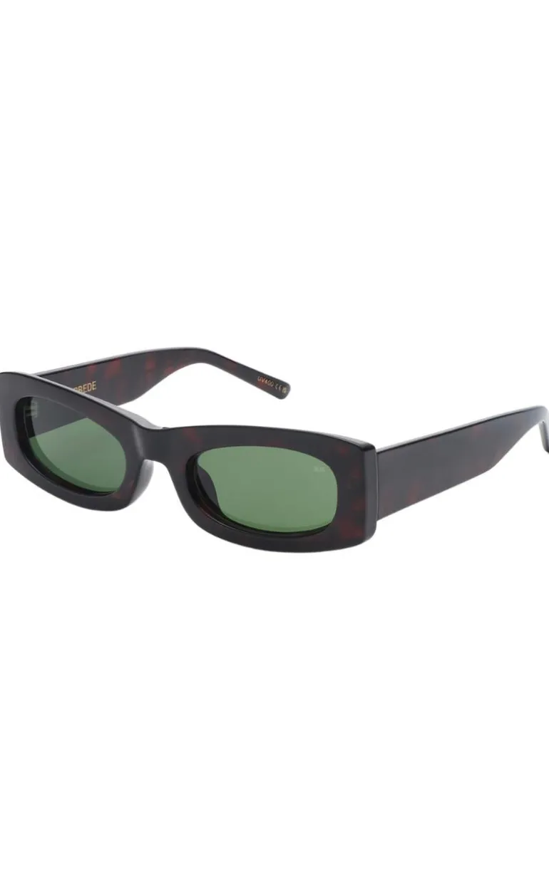 Seje solbriller i brun med grønt glas.