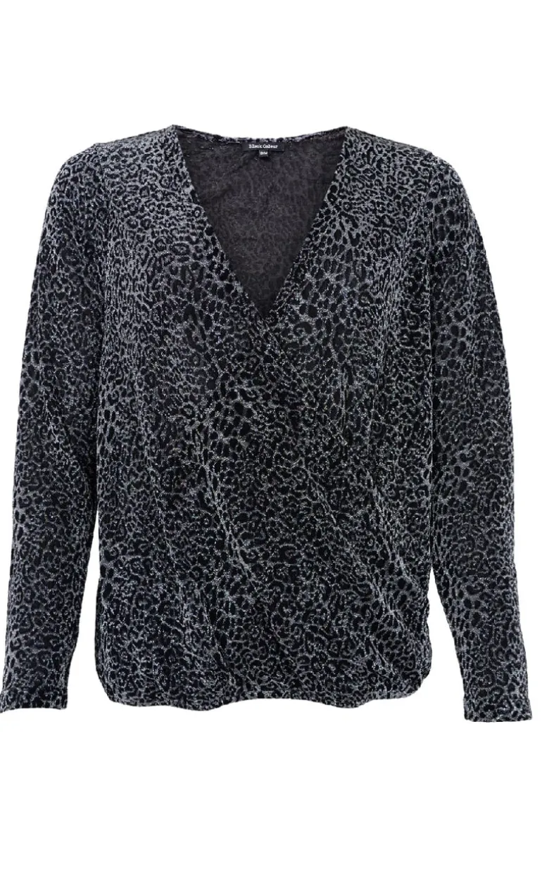 Wrap bluse med balloon effekt forneden, fra Black Colour i et skinnende leopard-lurex print.