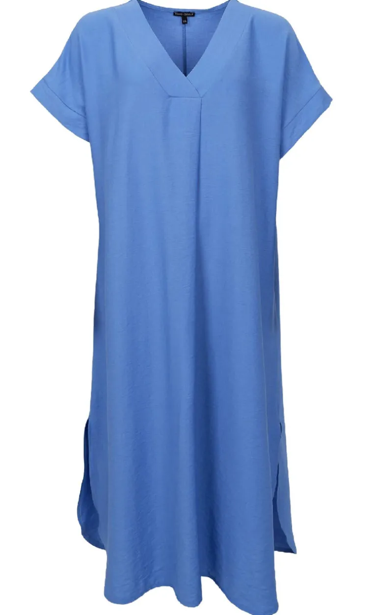 Kjolen har en v-hals og korte ærmer.