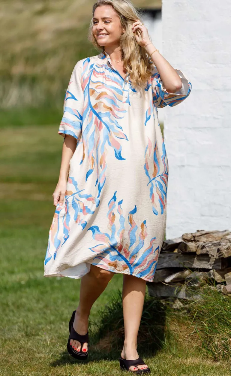 Kjolen har brede 3/4 lange ærmer samt en løs pasform.