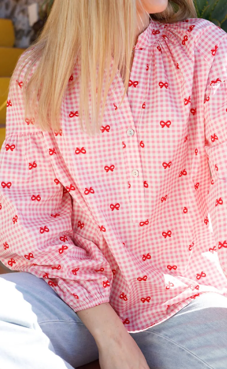 Oversize raglan skjorte i et ternet print, med små detaljer rundt på skjorten.