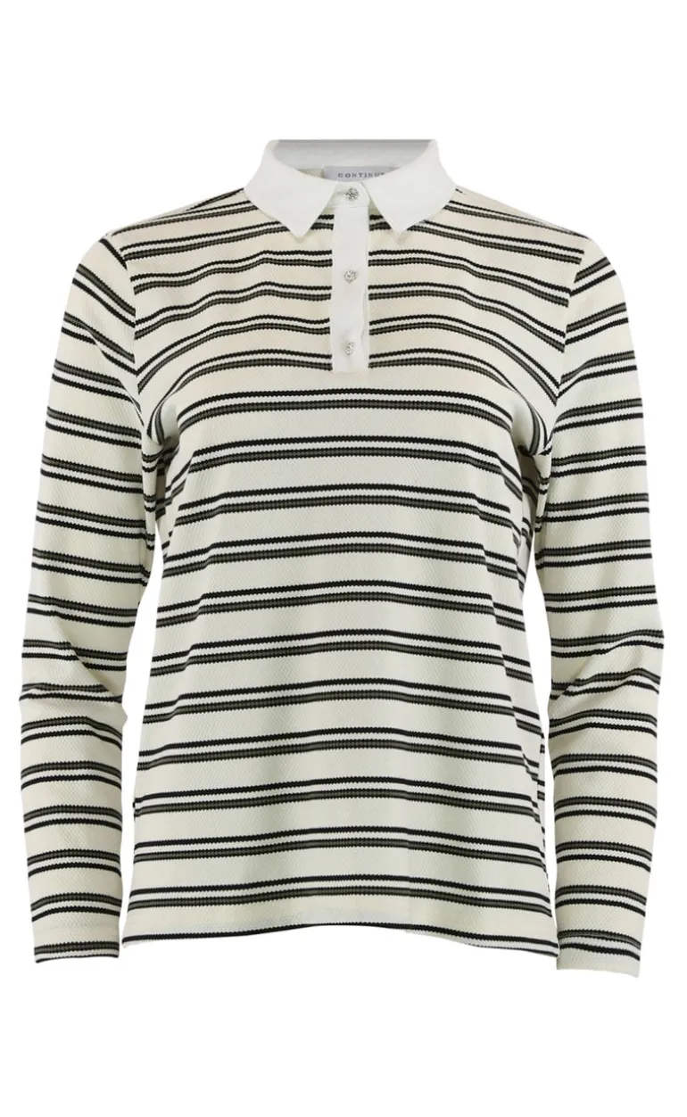 Stribet polo bluse fra Continue i en dejlig lækker kvalitet.