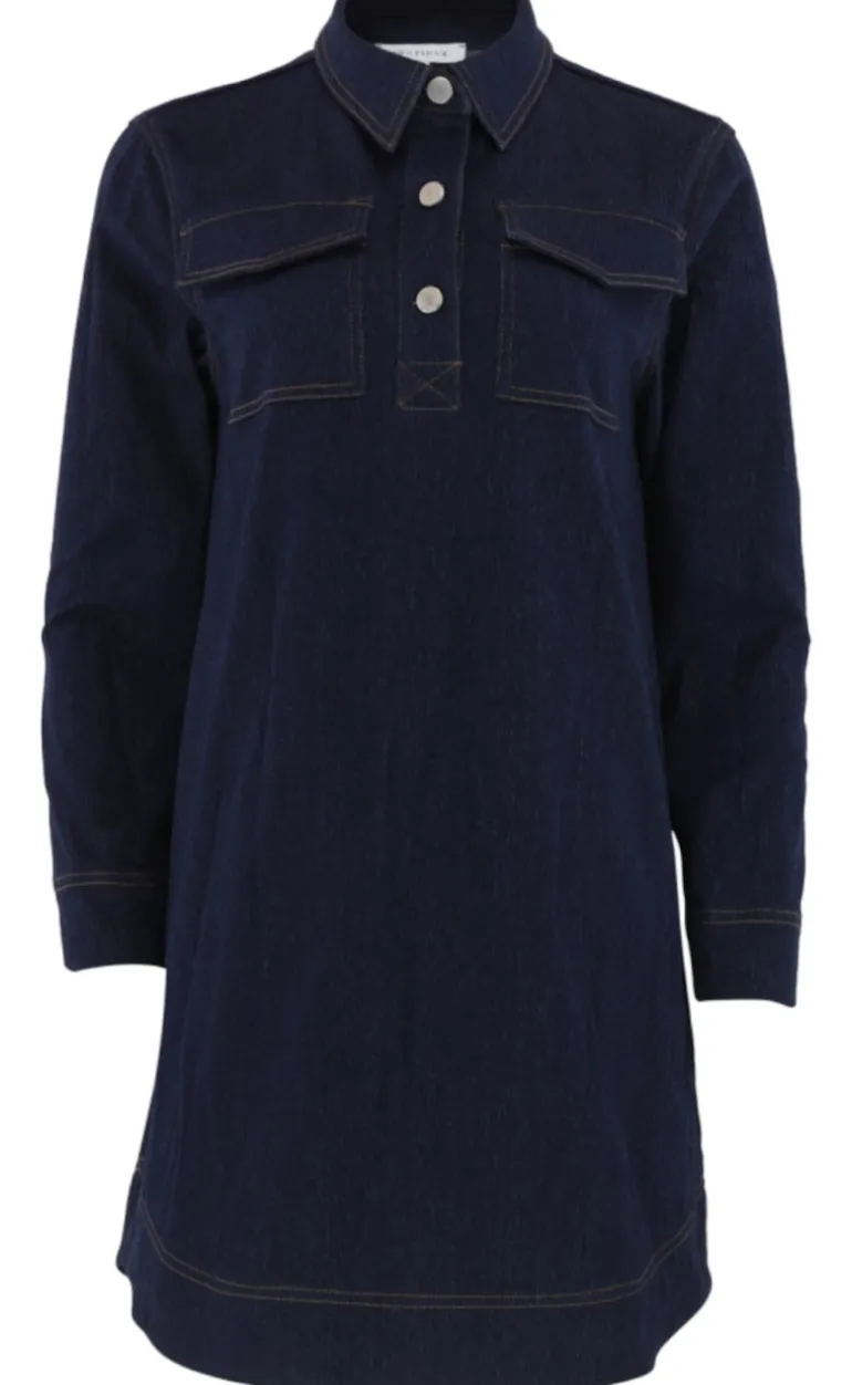 Lækker denim kjole fra Continue i en mørke blå wash.