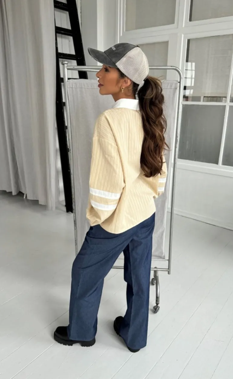 Denne skjorte har striber og tallet 21 stående på det ene bryst.