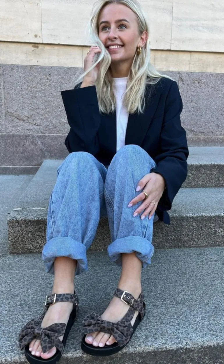 Disse sandaler kombinerer komfort med et stilrent design, der passer til de varme sommerdage. De har to store sløjfer på toppen.
