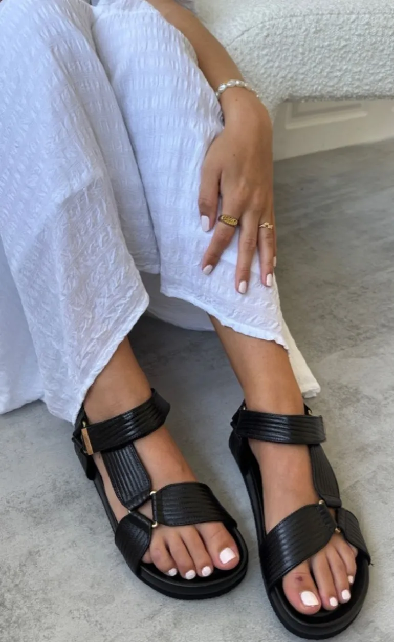 Sandalerne har nogle super fine detaljer, som får den til at se ekstra eksklusiv ud. Skoene kan justeres med velcro, og er fremstillet i et dejligt blødt materiale at have på!