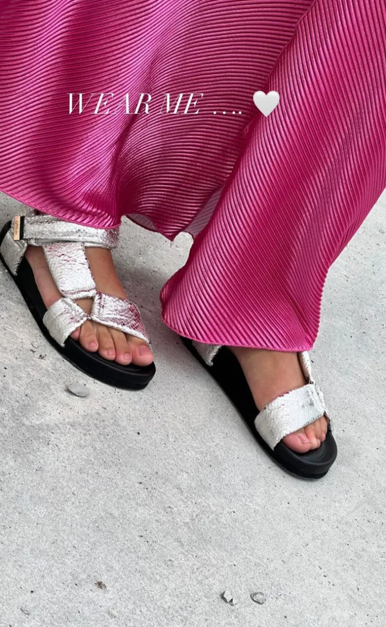 Flotte sandaler fra Copenhagen Shoes I sølv med et diskret slangemønster.