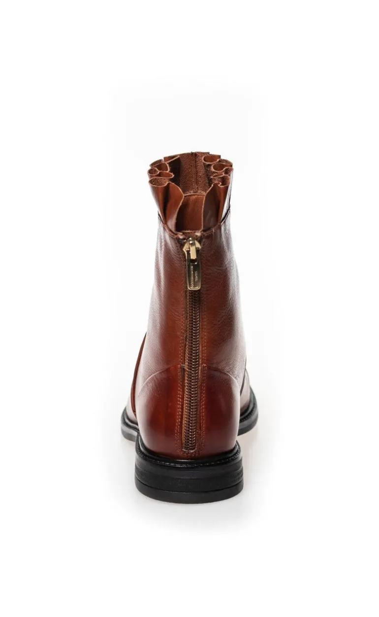 Smukke ankelstøvler fra Copenhagen Shoes i brun/cognac, med en fin flæsekant.