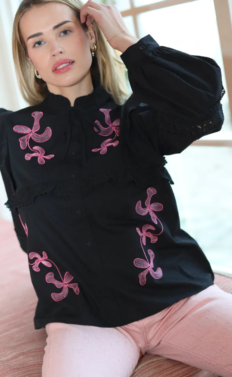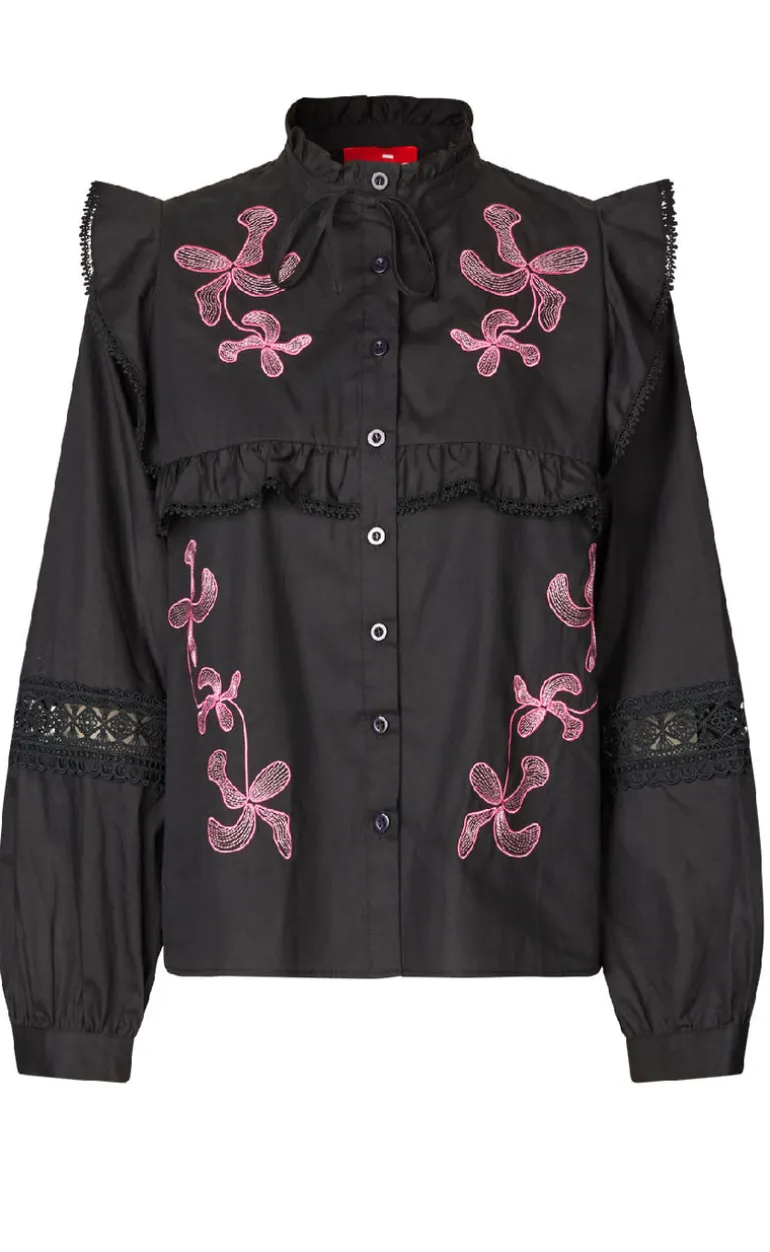 Lækker og unik skjorte fra Cras i sort, med lyserøde detaljer.