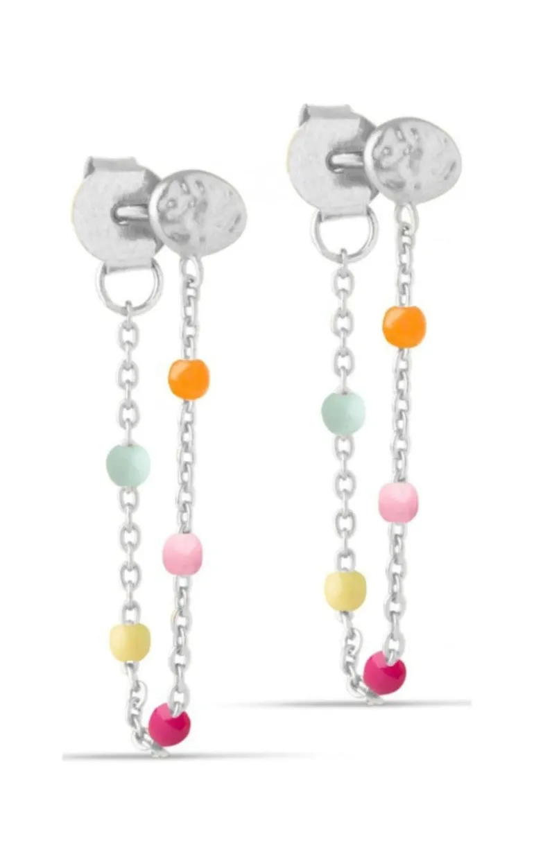Farverige ENAMEL Copenhagen Lola øreringe i sølv med en kæde og emaljer i flotte farver.