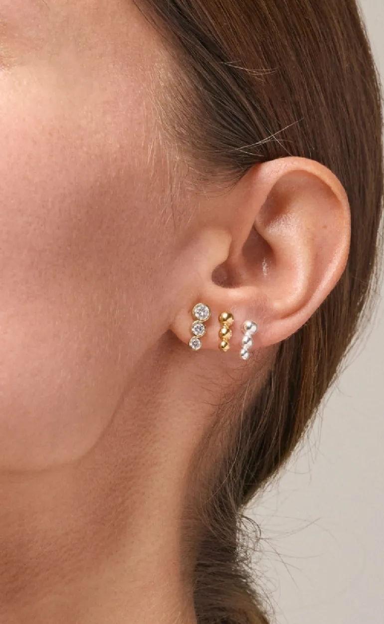 Fine ørestikkere fra ENAMEL Copenhagen, i guld formet som tre fine kugler.