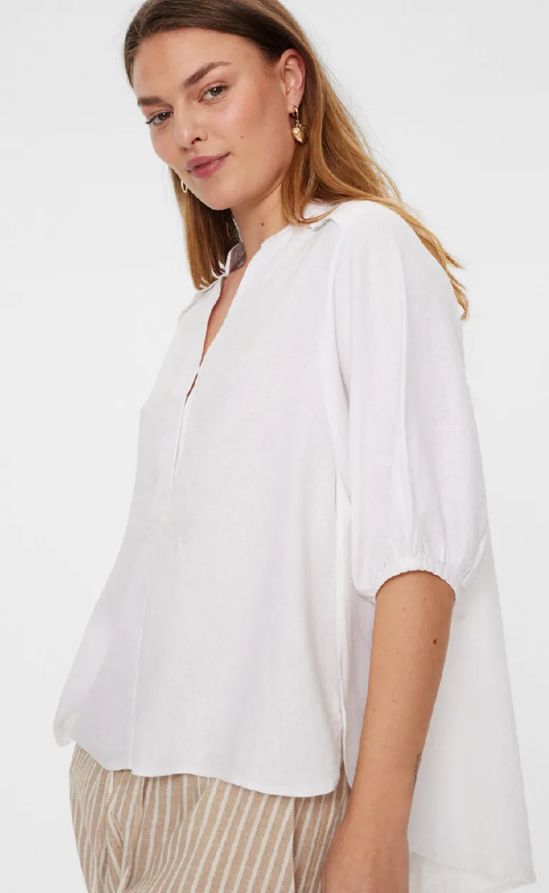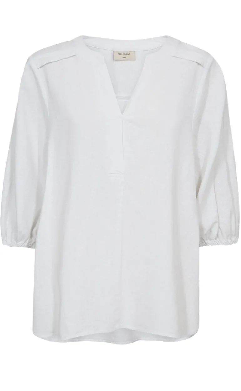Feminin bluse fra Freequent i hvid, fremstillet i en dejlig hør kvalitet.