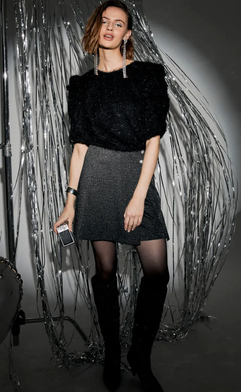 Festlig bluse fra Frequent i sort, med en fin glimmer effekt.