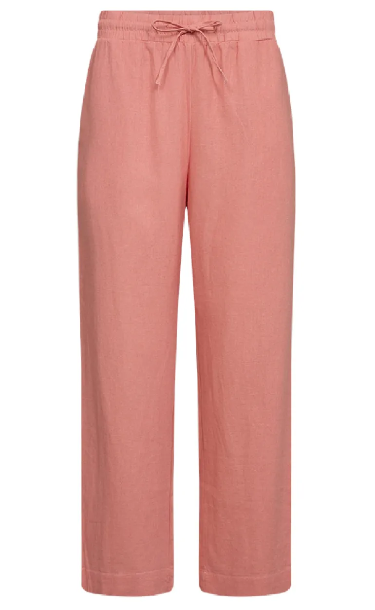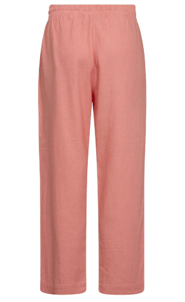 Lækre hørbukser fra Freequent i en flot coral farve.