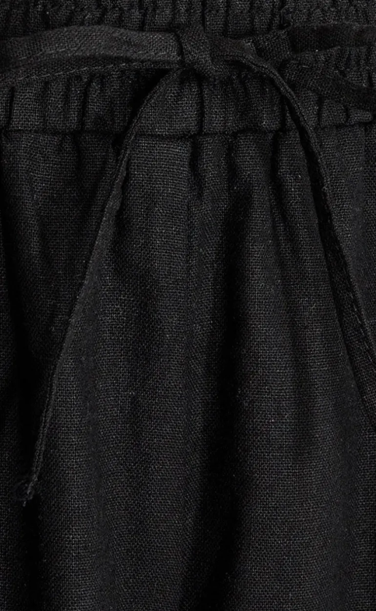 Bukserne er i hørkvalitet og har elastikkant, samt snøre i taljen.