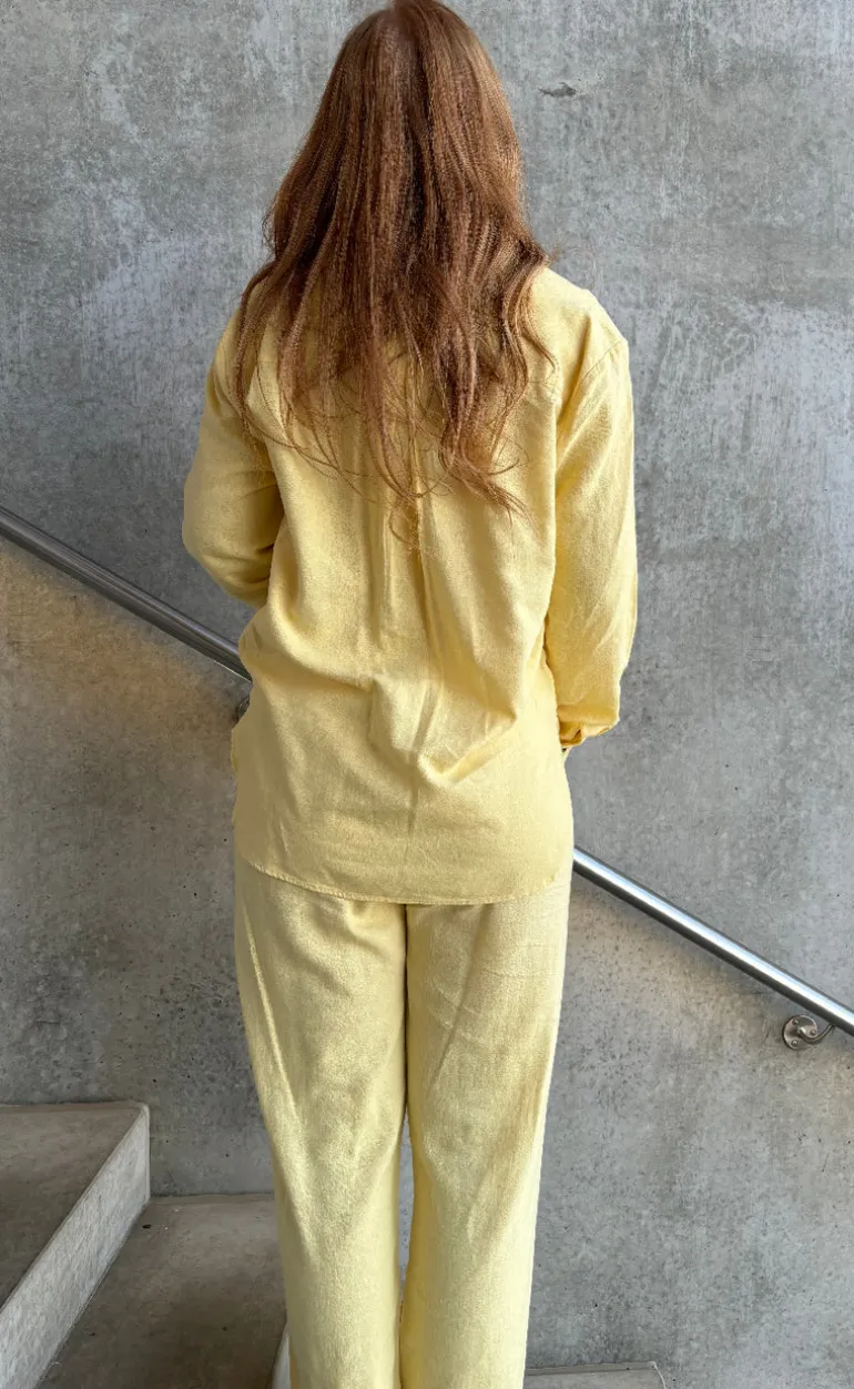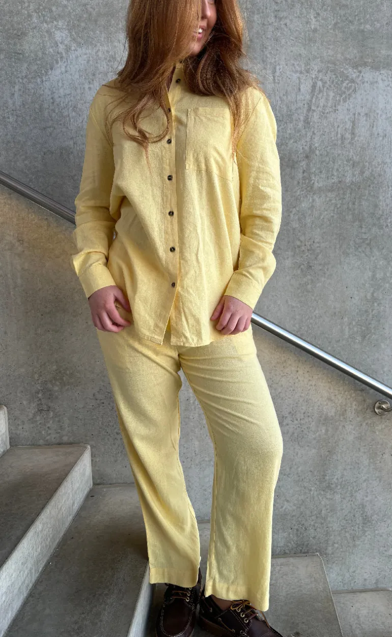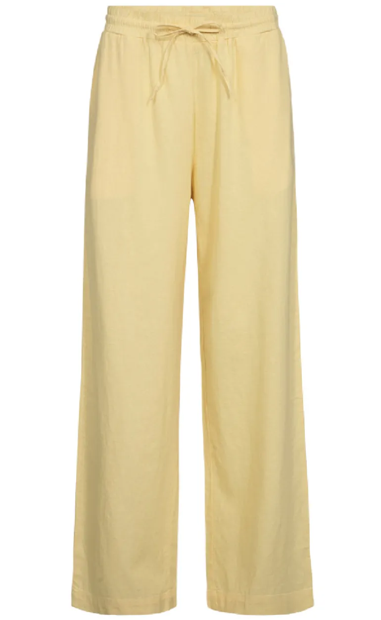 Bukserne er i hørkvalitet og har elastikkant, samt snøre i taljen.