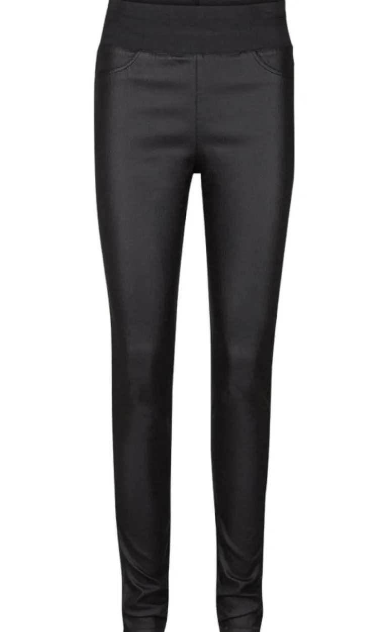 Virkelig lækre og strækbare bukser fra Freequent i sort læder look med smalle ben.