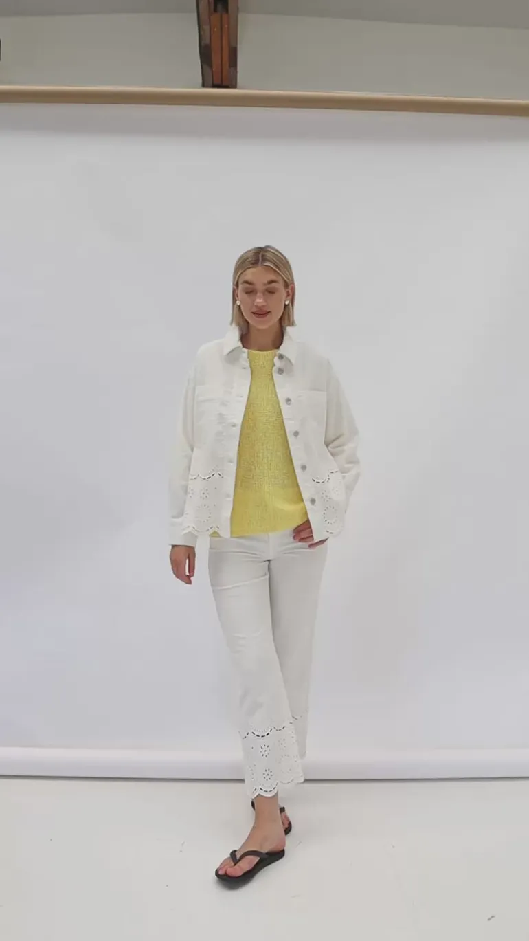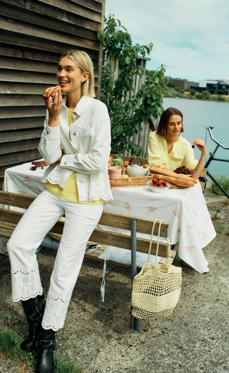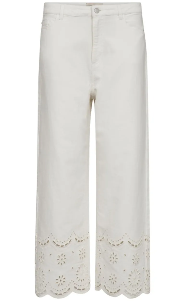 Pæne hvide jeans, med blonder i bunden og vide ben.