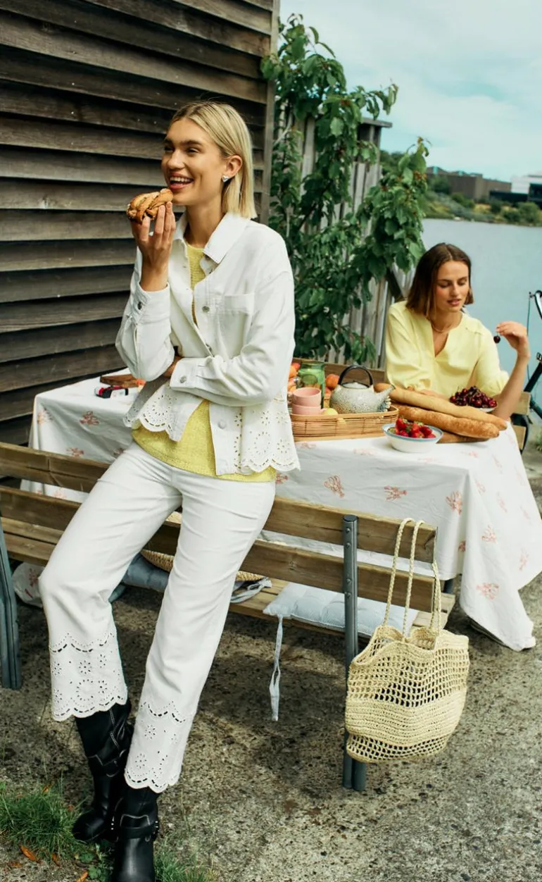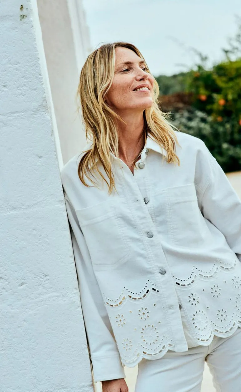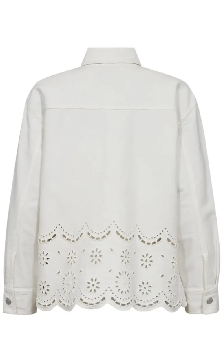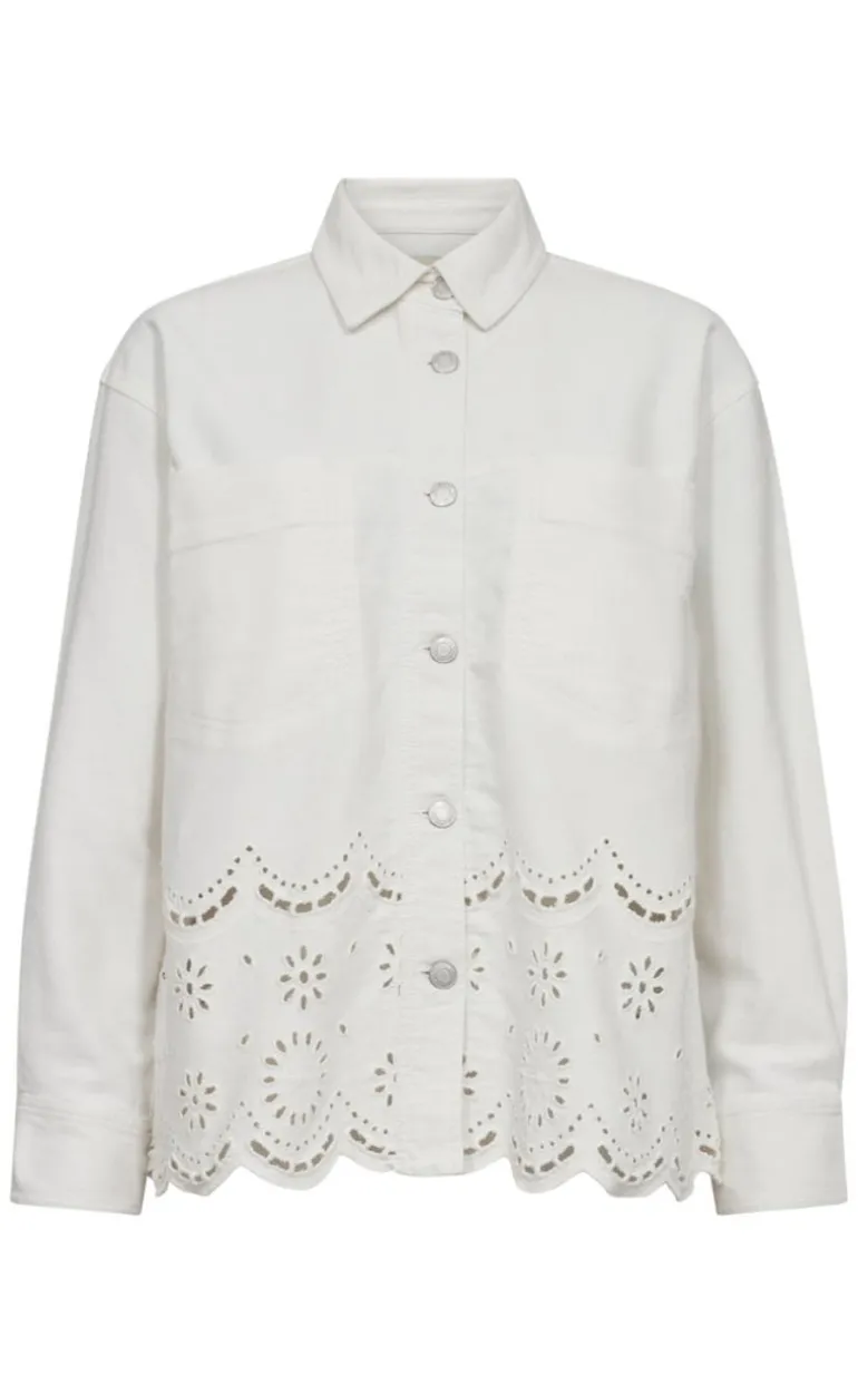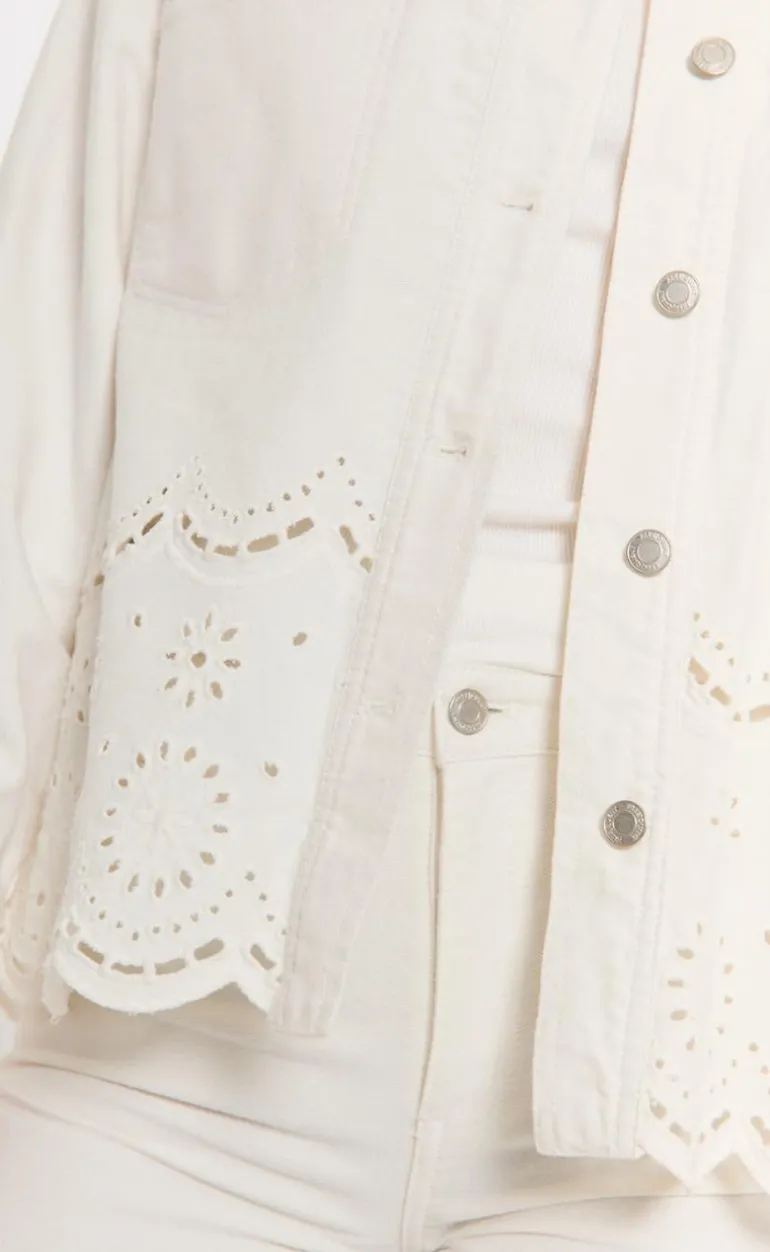 Denne jakke er hvide og har blonder i bunden.