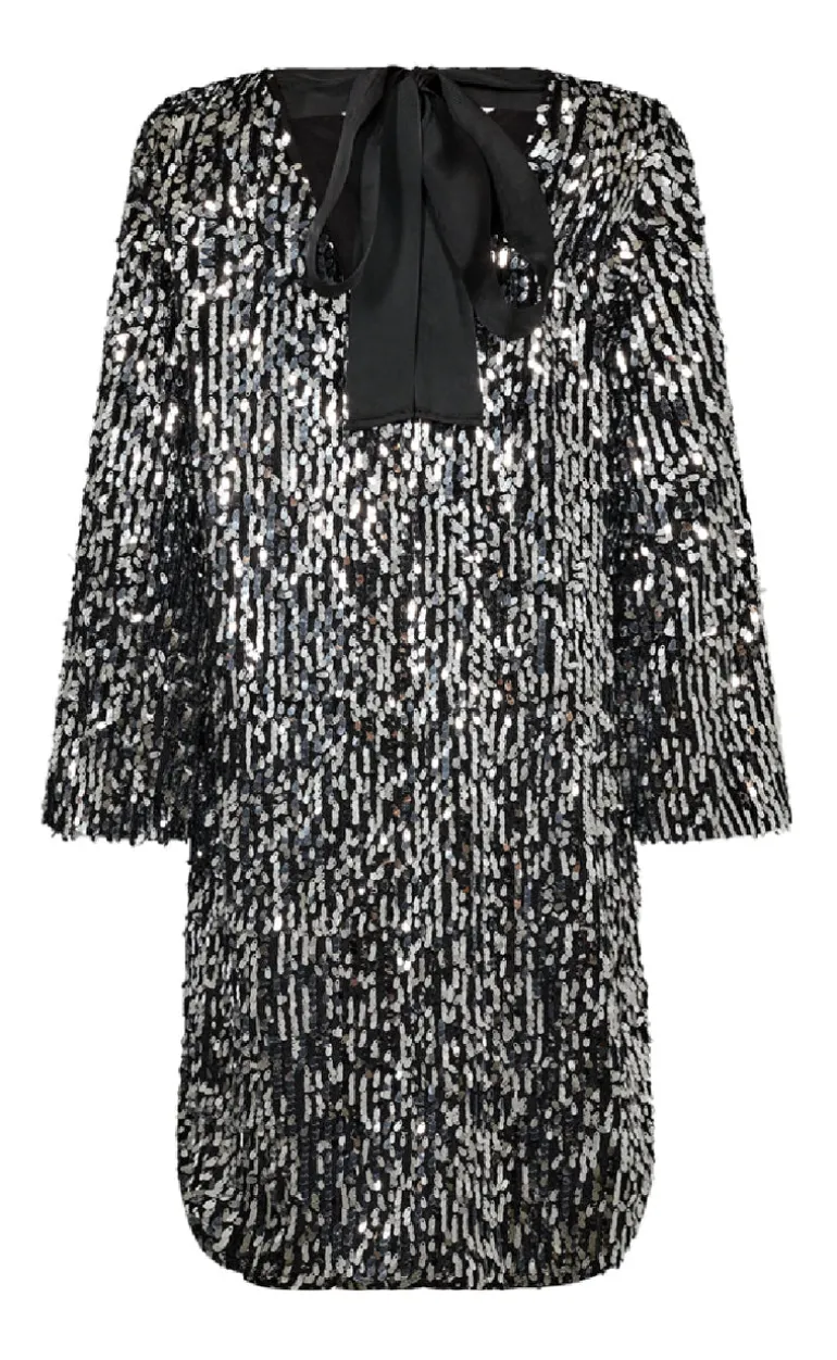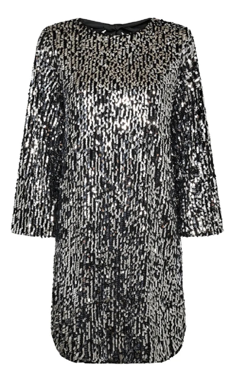 Fin, festlig og feminin kjole fra Freequent i grå med palietter.