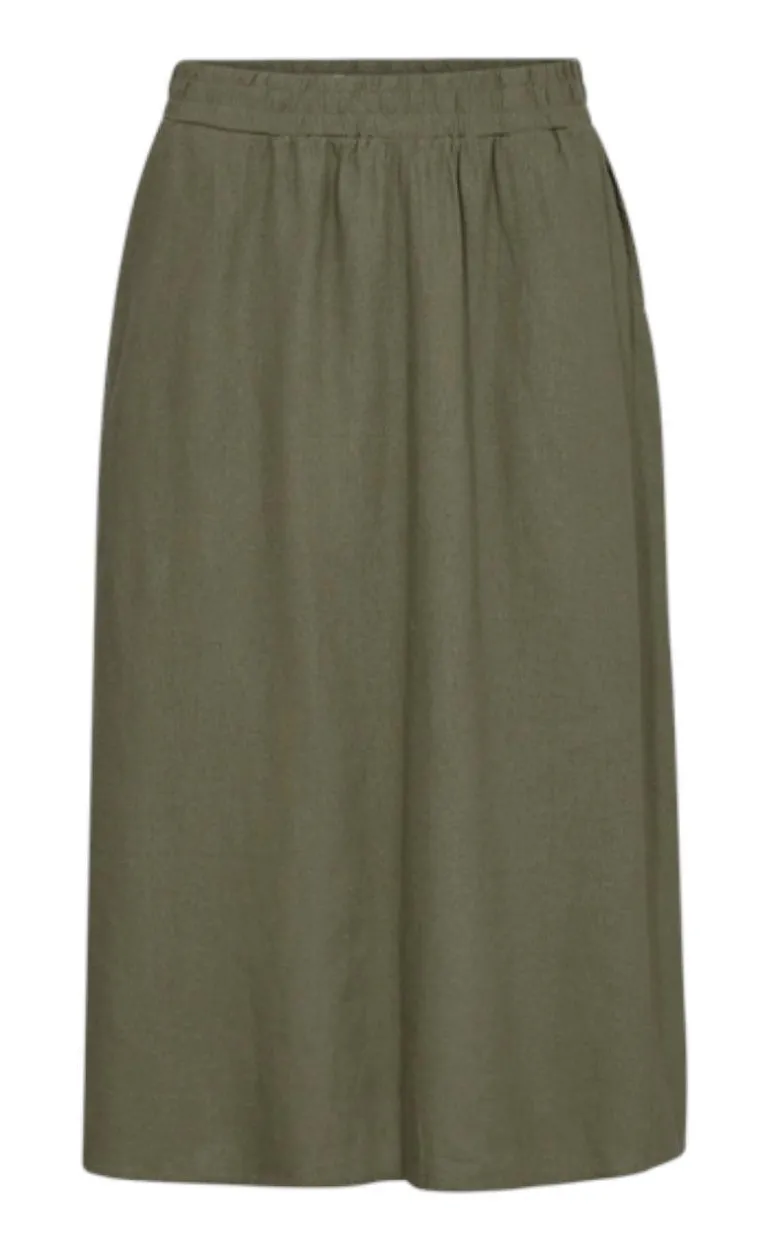 Fin hør nederdel fra Freequent i grøn.
