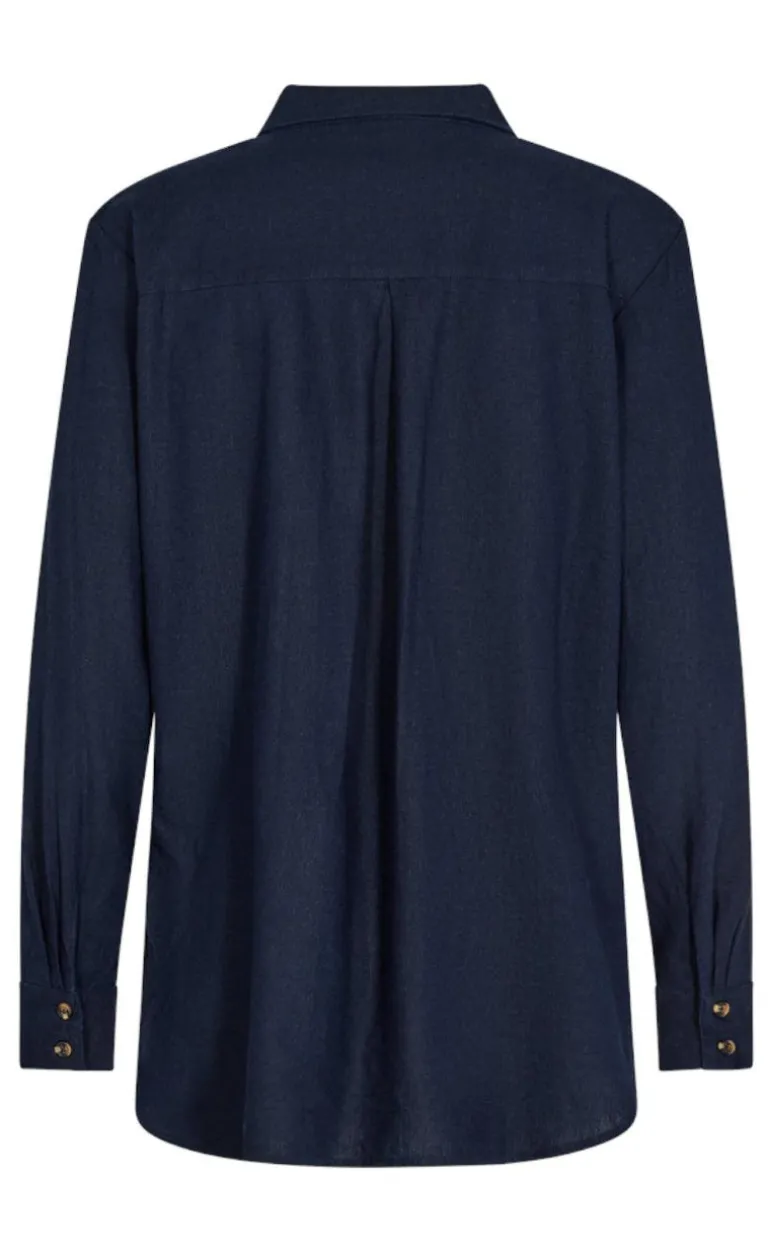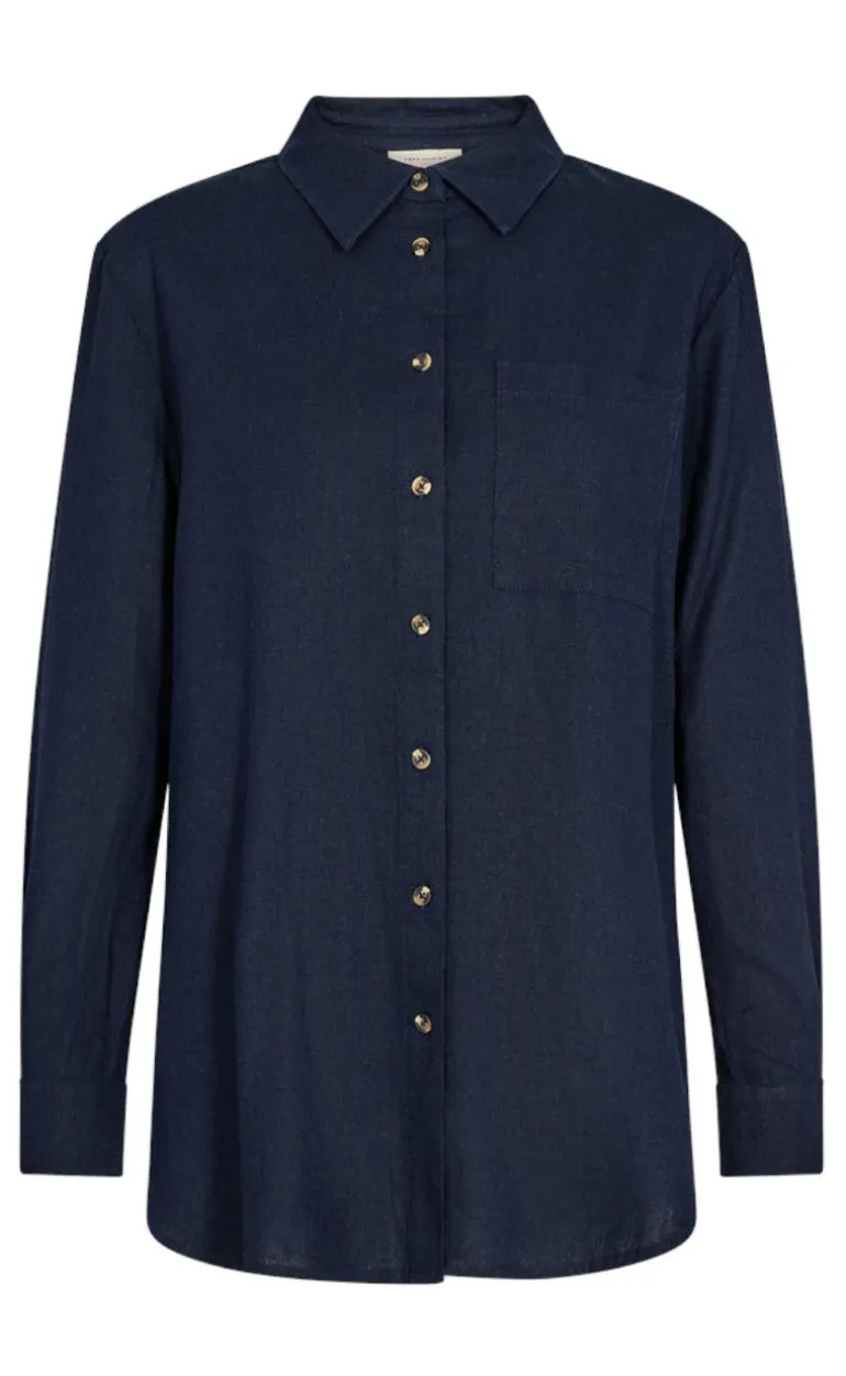 Moderne hør-skjorte fra Freequent i blå.