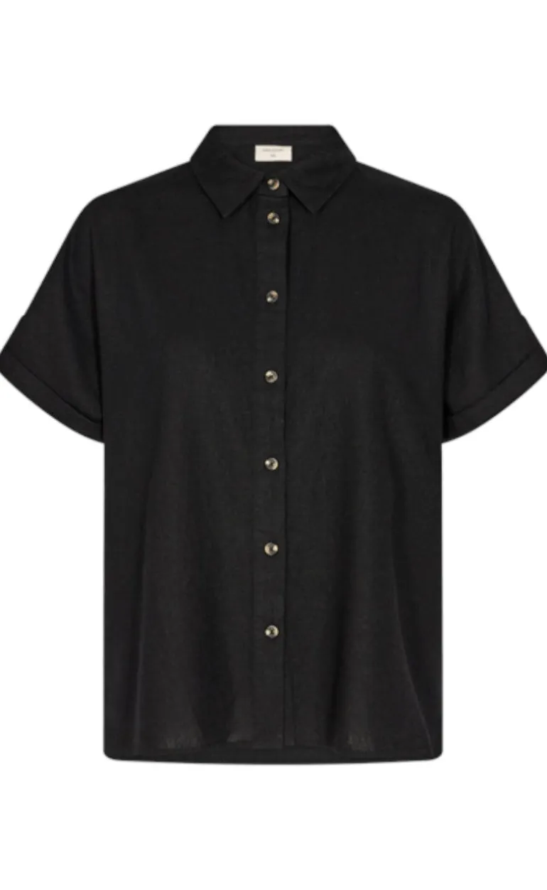 Moderne hør-skjorte fra Freequent i sort.