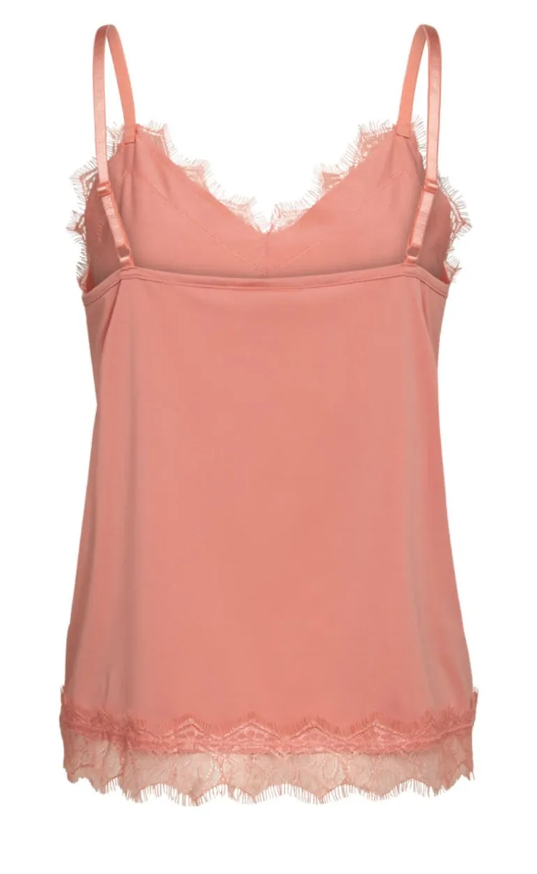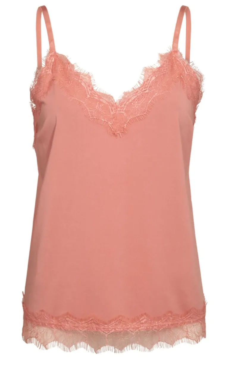 Virkelig fin top med blonder fra FreeQuent i en coral farve, der er perfekt til basicgarderoben.