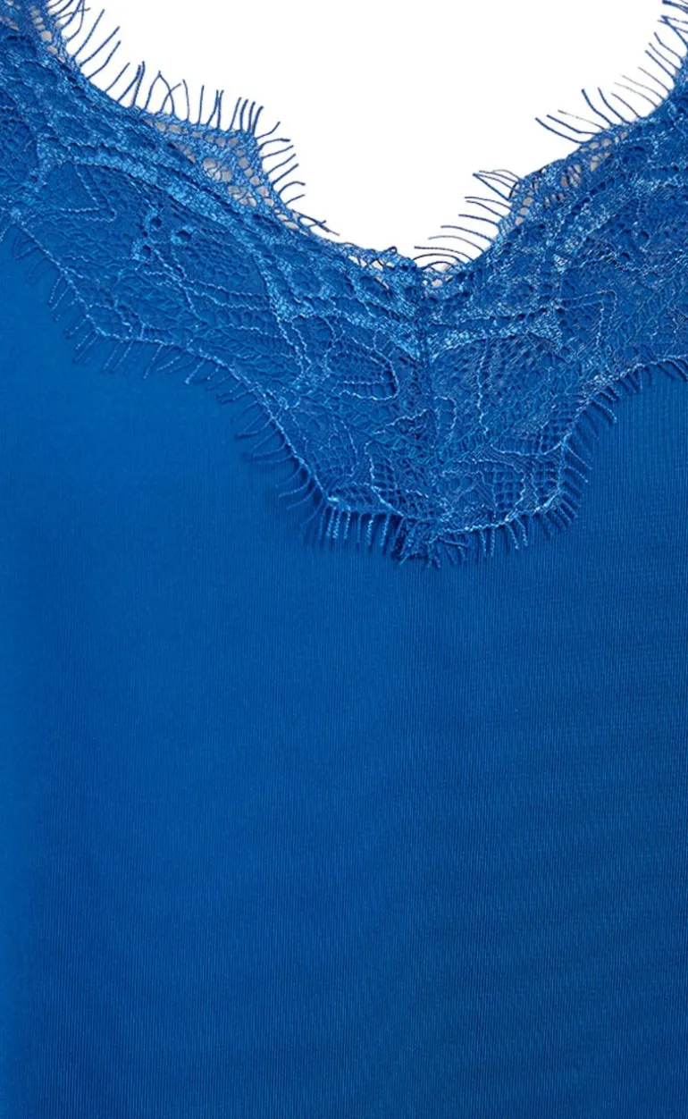 Skøn top med blonder fra FreeQuent i blå der er perfekt til basicgarderoben.