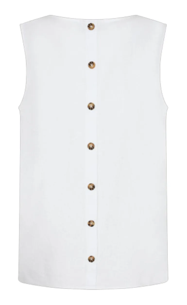 Toppen er ærmeløs og har en rund halsudskæring. Desuden har toppen knapper på ryggen.