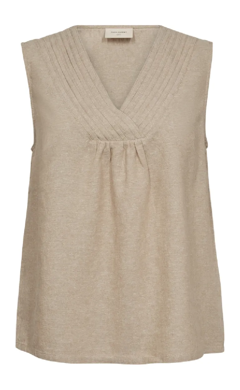 Sandfarvet top fra Freequent med en cool effekt fortil.