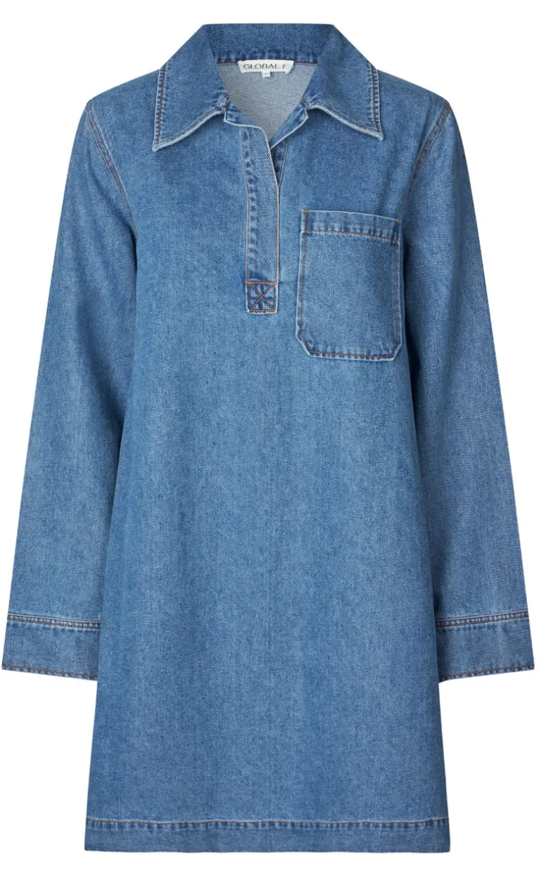 Kjolen har en v-hals, lange ærmer og en brystlomme.