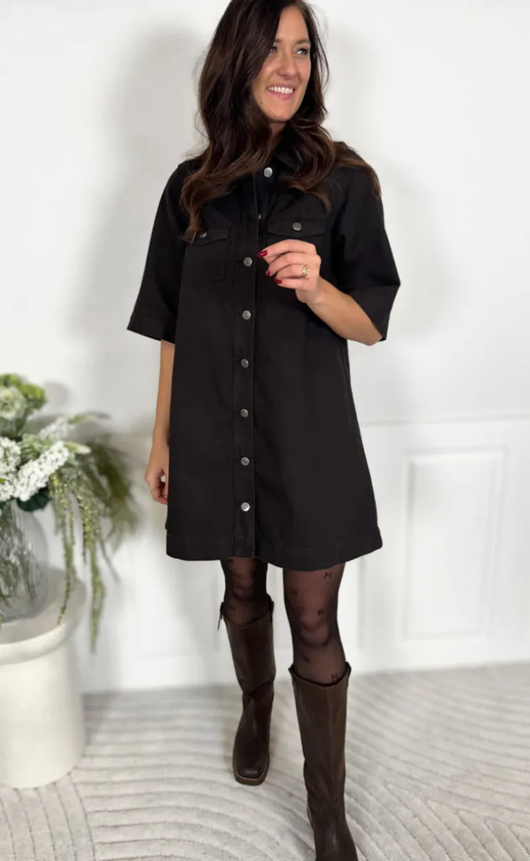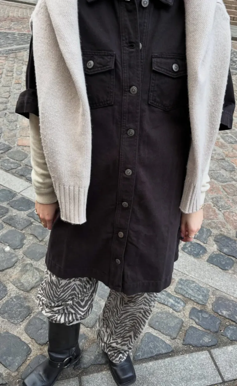 Flot denim kjole fra Global Funk i mørkebrun.