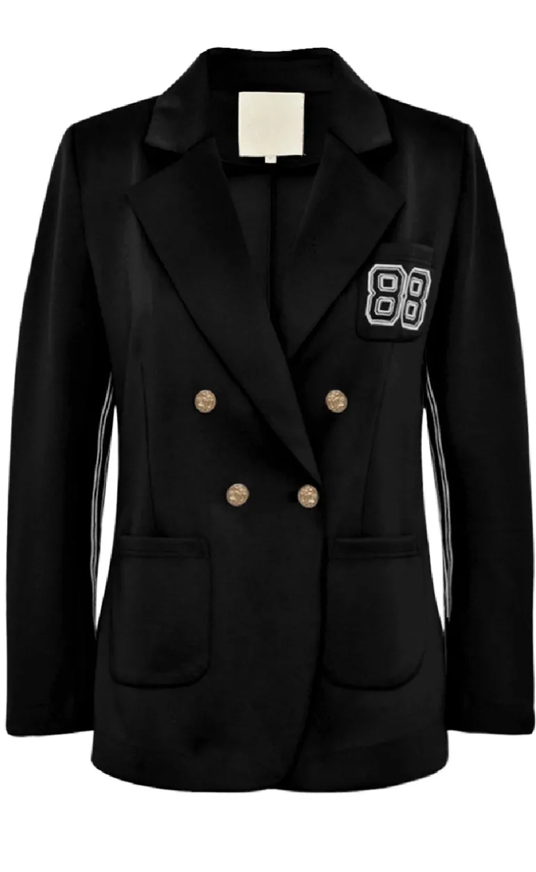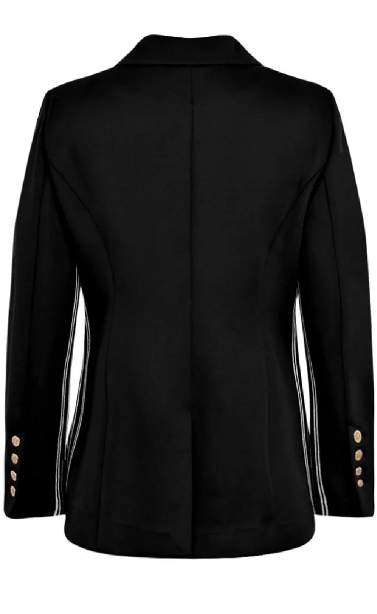 Unik, figursyet blazer fra Gossia i sort med en hvid stribe detalje.