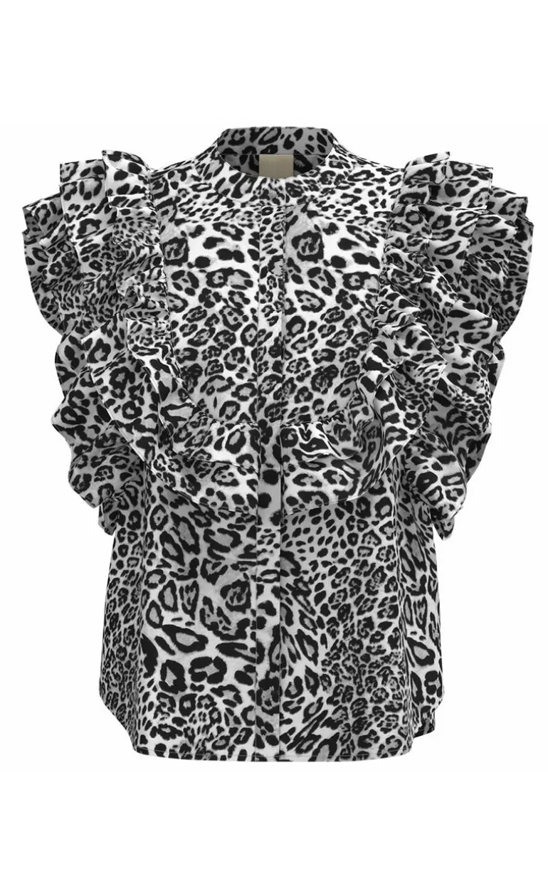 Skøn bluse fra Gossia i et leopard print. Blusen har korte ærmer samt flæse detaljer.