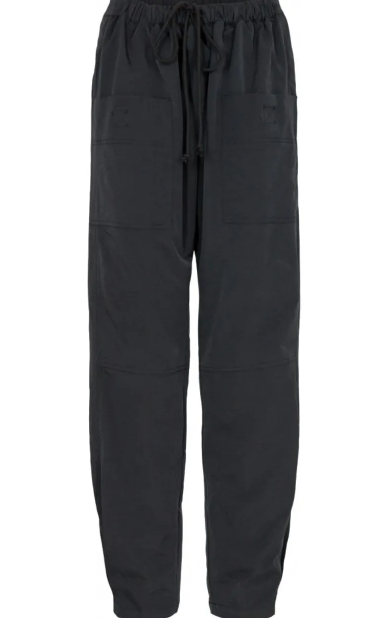 Bukserne har en løs pasform med elastik og bindebånd i taljen. Bukserne er fremstillet i en lækker blød kvalitet og har lommer foran.