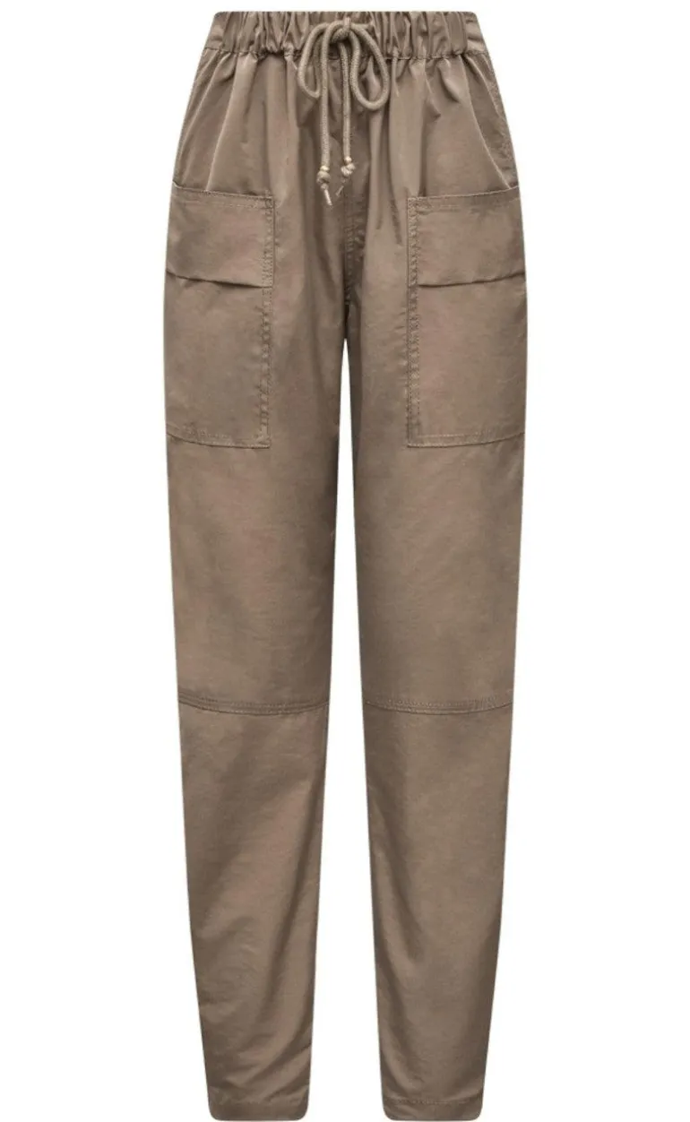 Bukserne har en løs pasform med elastik og bindebånd i taljen. Bukserne er fremstillet i en lækker blød kvalitet og har lommer foran.