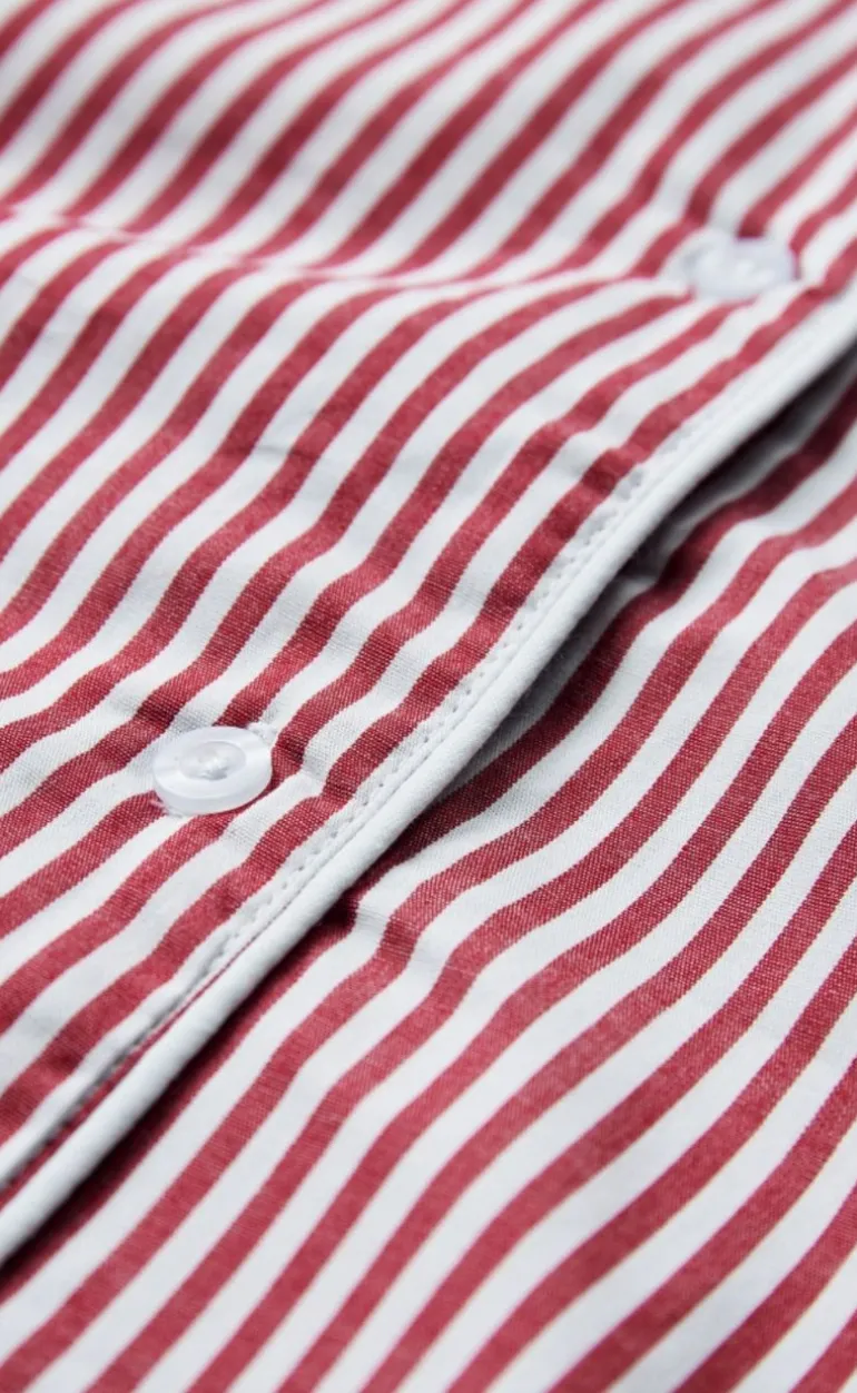 Stribet skjorte i rød og hvid.