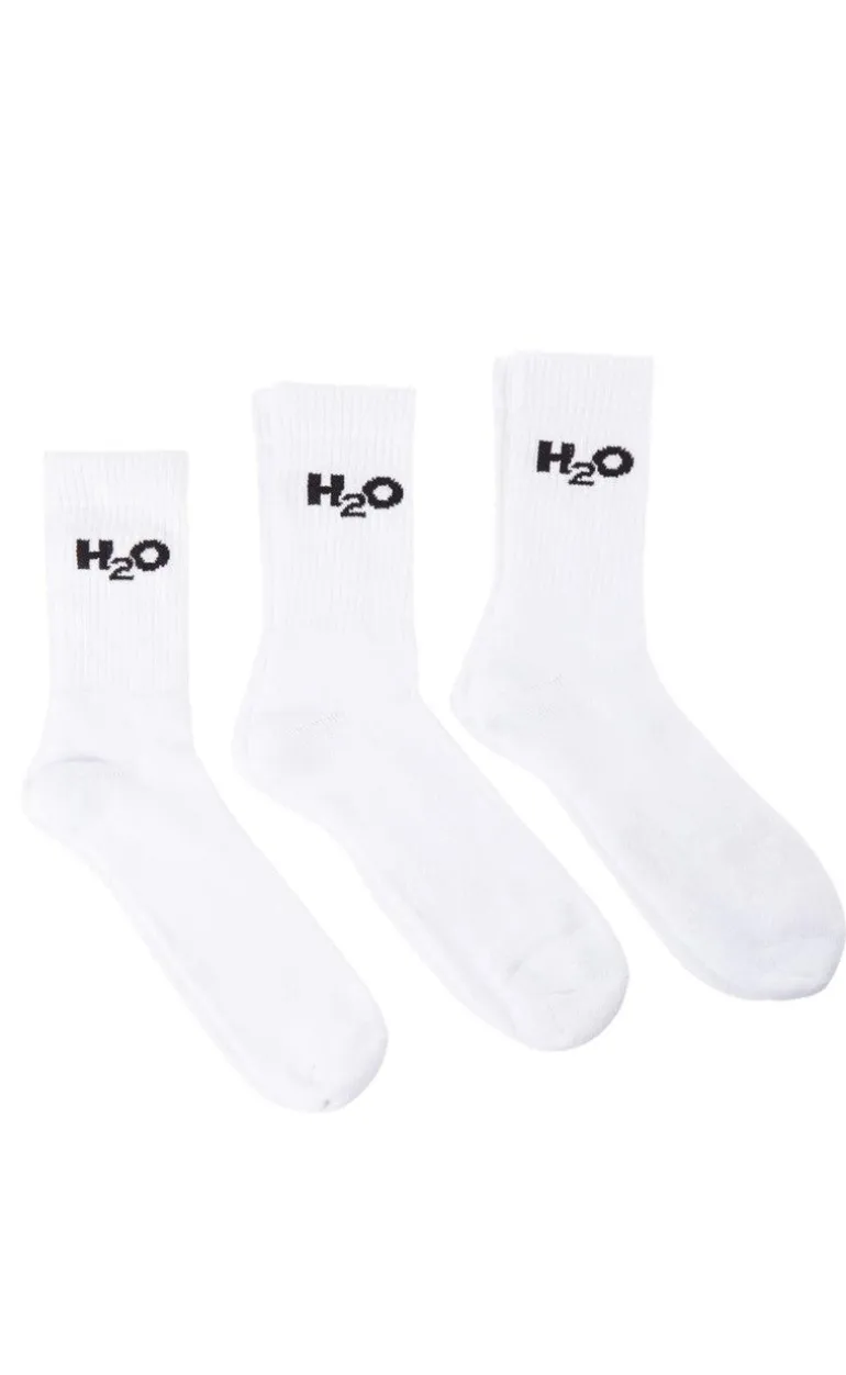 Du får en pakke med 3 hvide sokker fra H2O i hvid med logo.