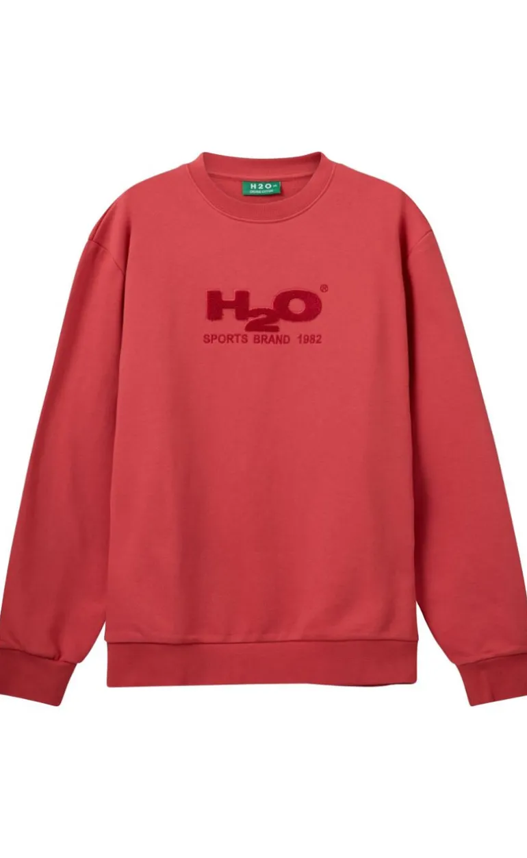 Denne sweatshirt er rød, og har det velkendte logo på brystet.