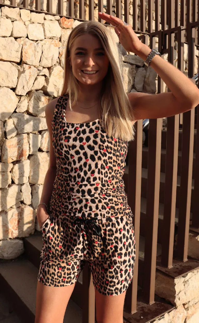 Tætsiddende top fra Liberte i et leoprint med røde hjerter.