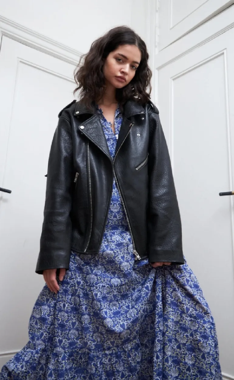 Sort og klassisk læderjakke fra Lollys Laundry i sort.