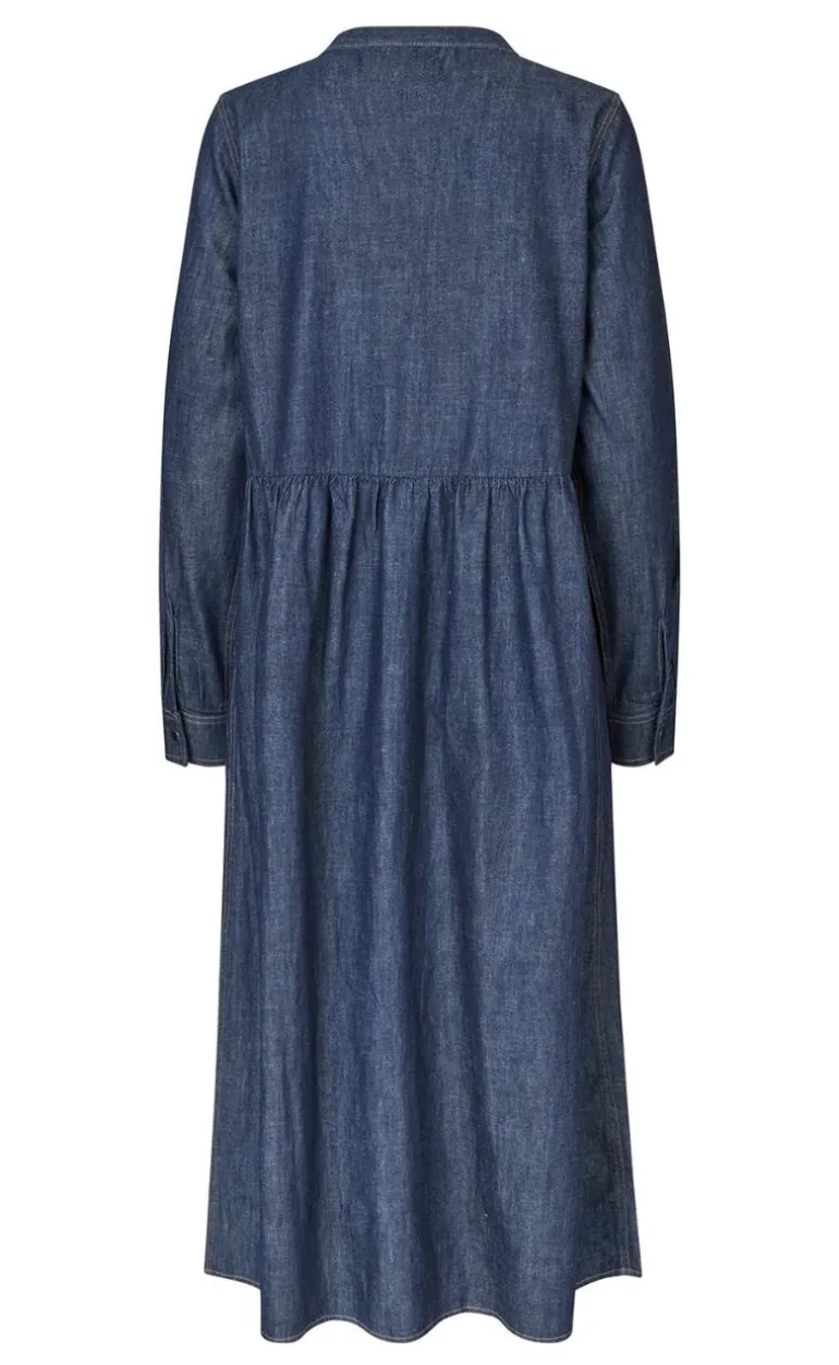 Denne smukke kjole er et tidløst valg til enhver garderobe, perfekt til dem, der værdsætter en klassisk mørk denimkjole med et moderne twist.