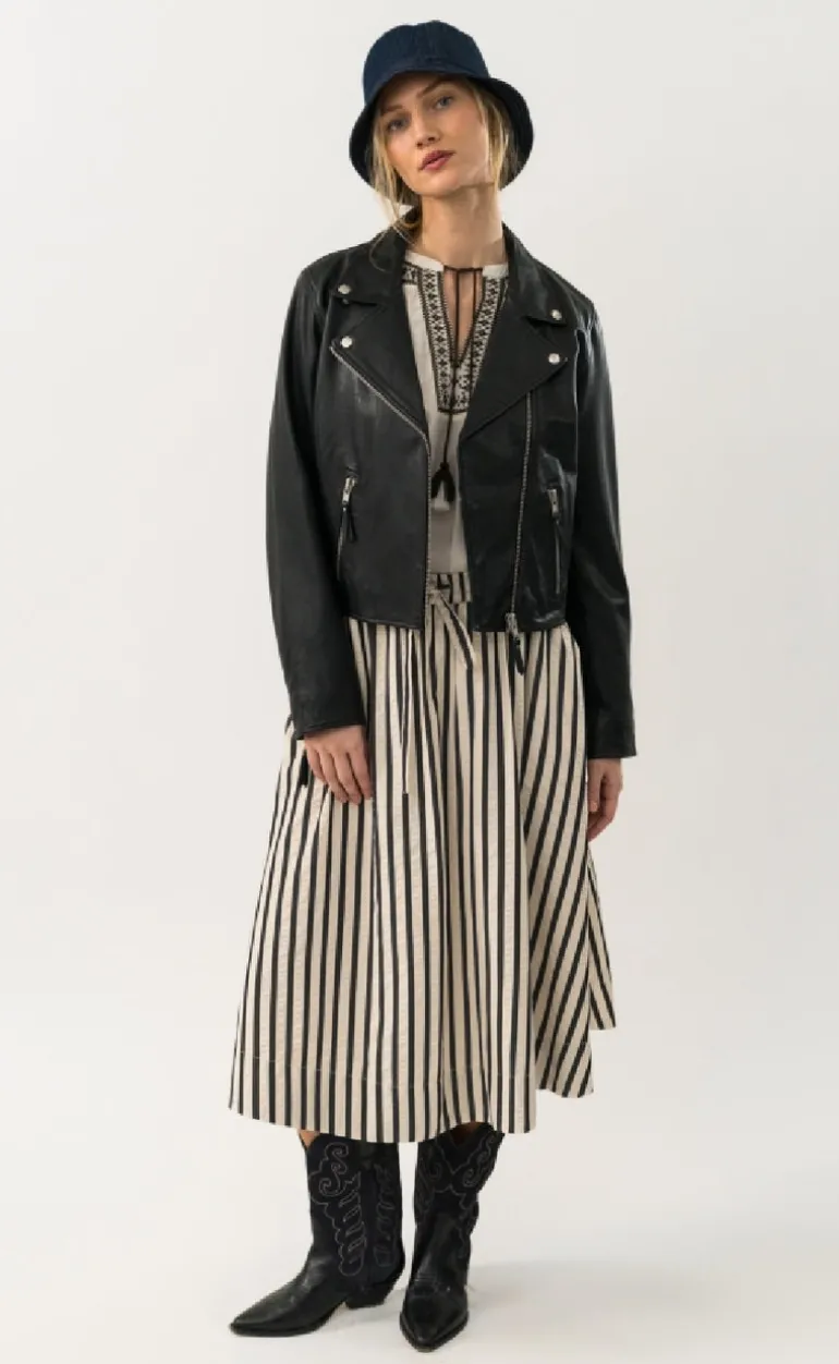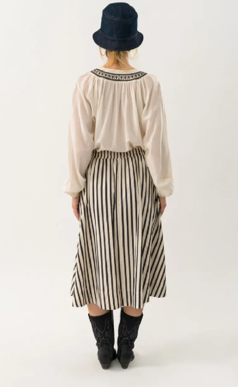 Midi nederdel fra Lollys Laundry i et stribet print.