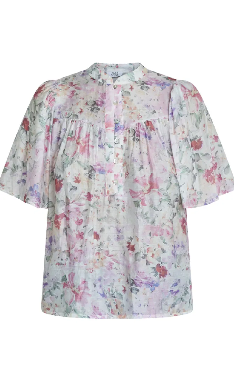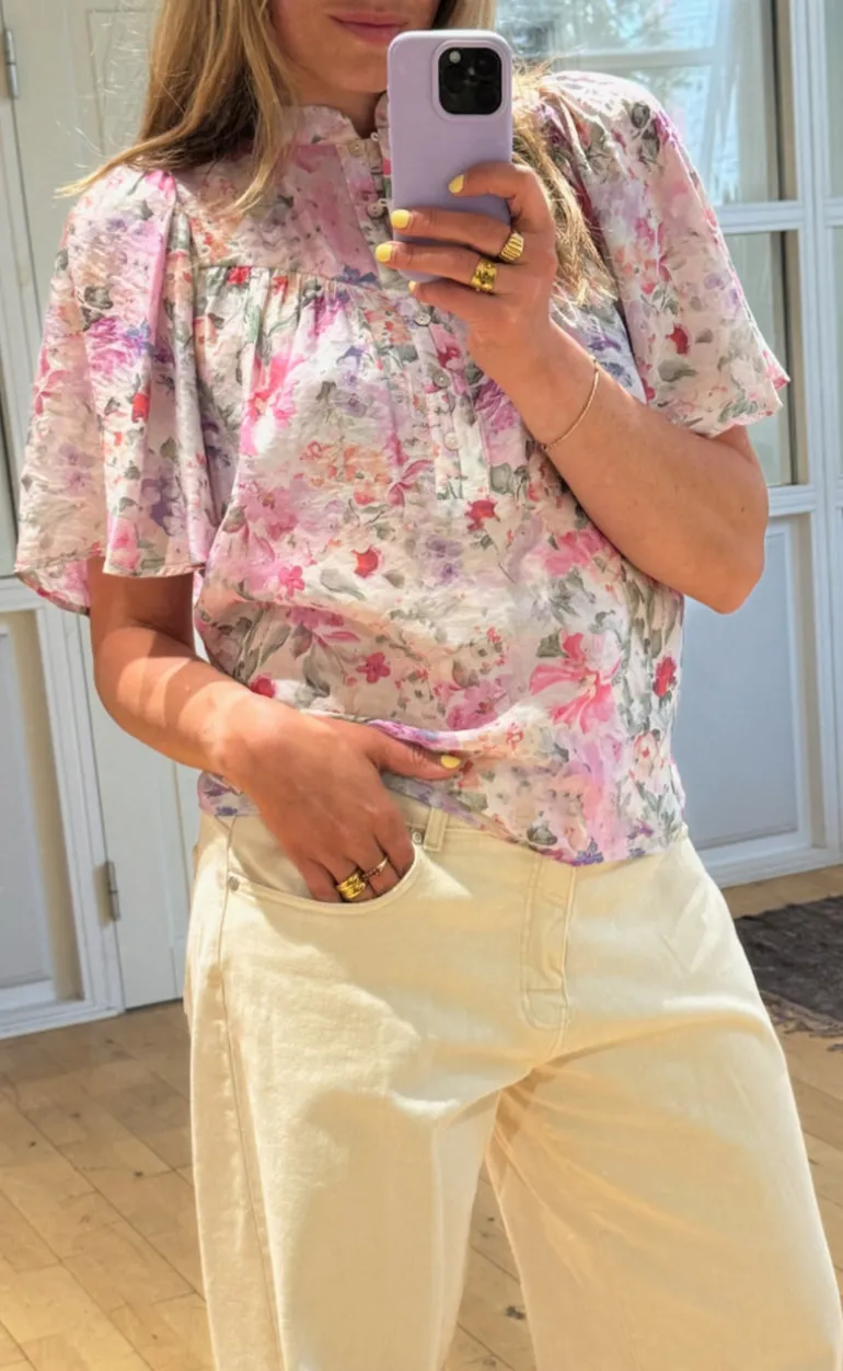 Sød og feminin bluse fra Love & Divine i et pastel farvet blomsterprint.