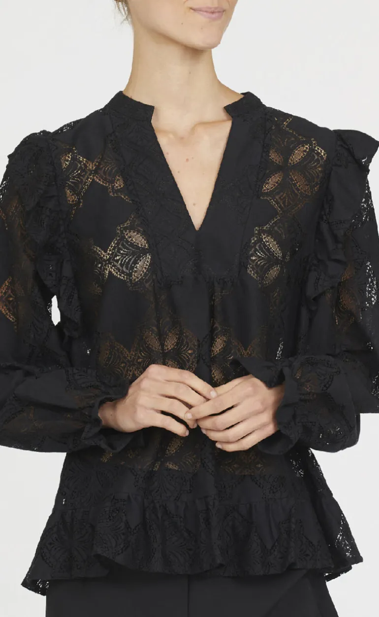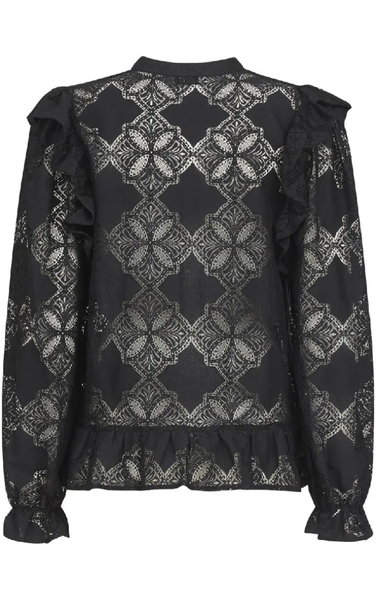 Denne fine bluse fra Love & Divine i et sort blonde mønster.