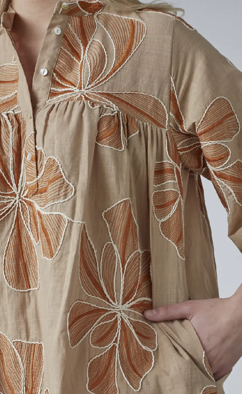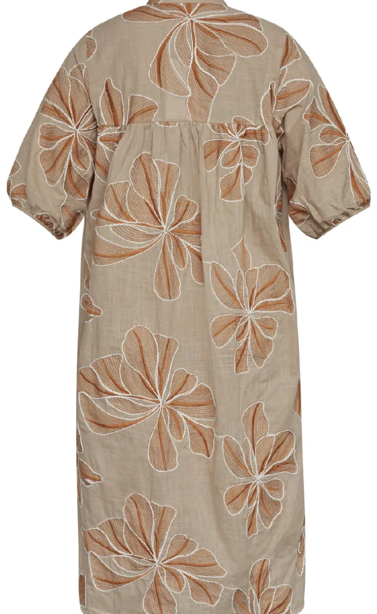 Smuk midi kjole fra Love & Divine i et sandfarvet blomsterprint.