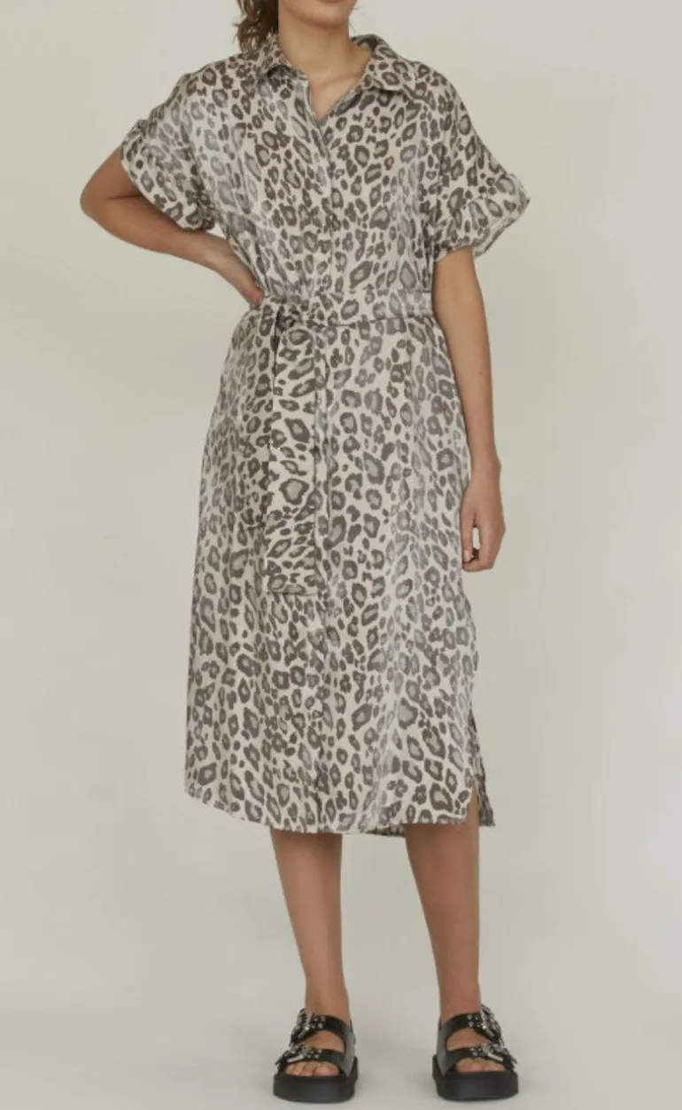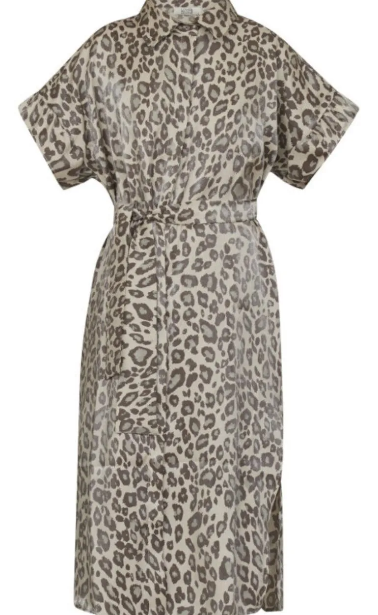 Kjolen har korte ærmer og bindes i taljen.