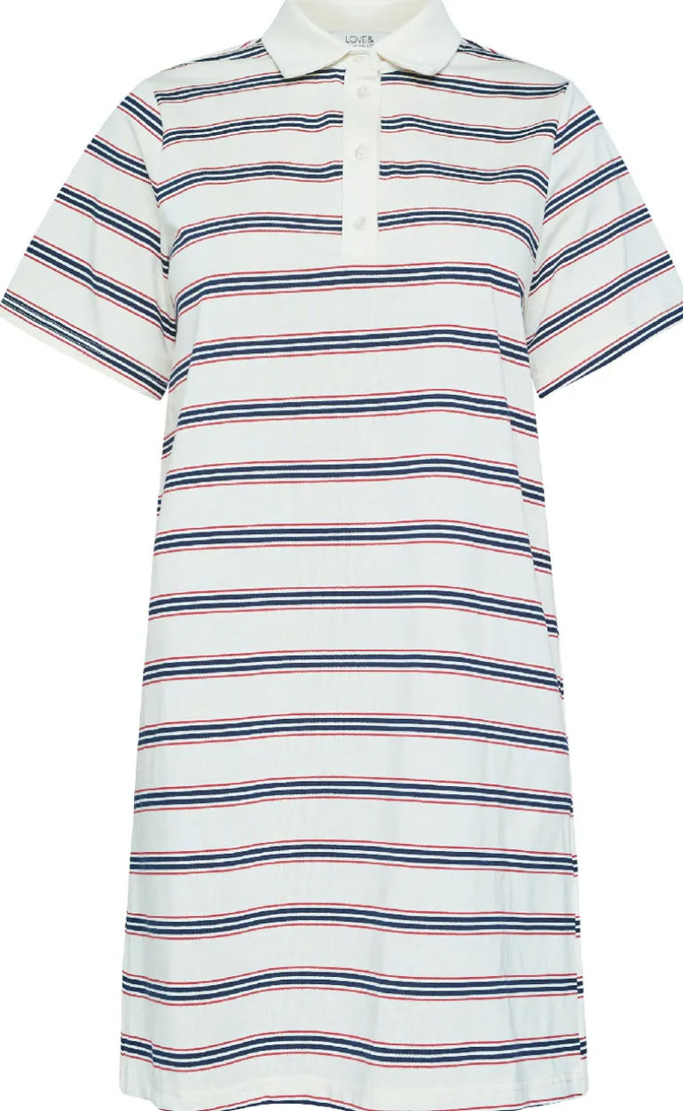 Stribet, polo kjole fra Love & Divine i creme hvid.